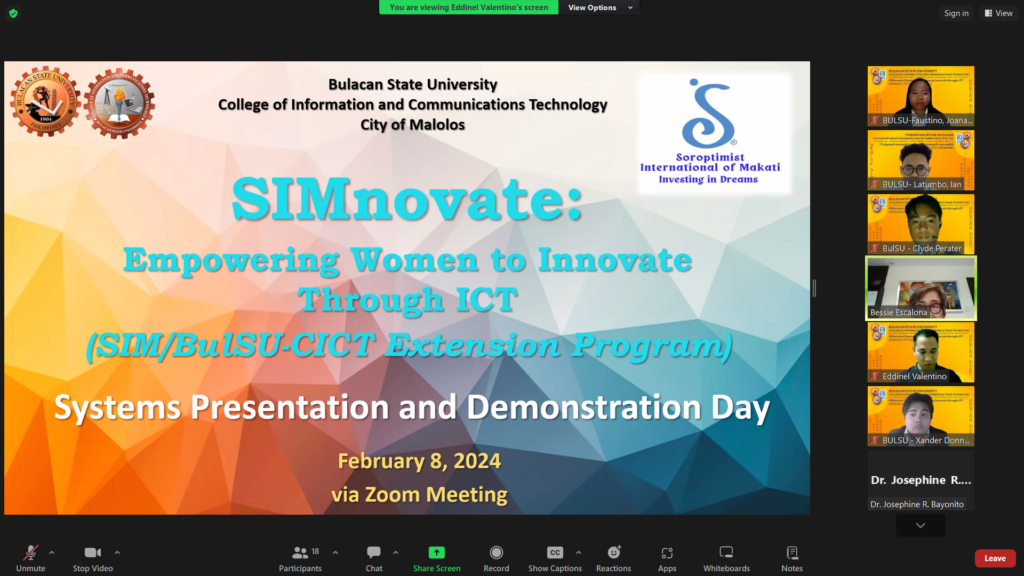 On February 8, 2024, our team proudly presented our capstone project, “Development of Web-based Community Management Information System for Pandi Resettlement Residences: Basis for the Sustainability of SIM Adopt-a-Barangay Program,” to Soroptimist International of Makati. This achievement is not just a testament to our technical skills but to our dedication to empowering women, uplifting families, and contributing to the growth and sustainability of our community.
